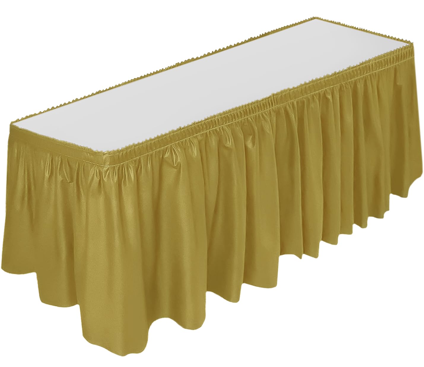 - Original Table Skirts – Table Skirt, 29 in x 14 ft -BPA Free- Plastic Tableskirt, Disposable, Reusable, Rectangular Tablecloth Skirt, Gold (1 Pack) by DecorRack