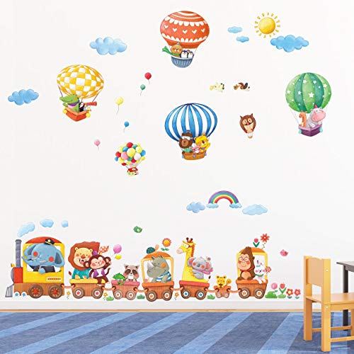 - Original Stickers – DL-1406L Large Animal Train & Hot Air Balloons Kids Wall Stickers Wall Decals Big Peel and Stick Removable Wall Stickers for Kids Nursery Bedroom Living Room (XLarge) décor by DECOWALL