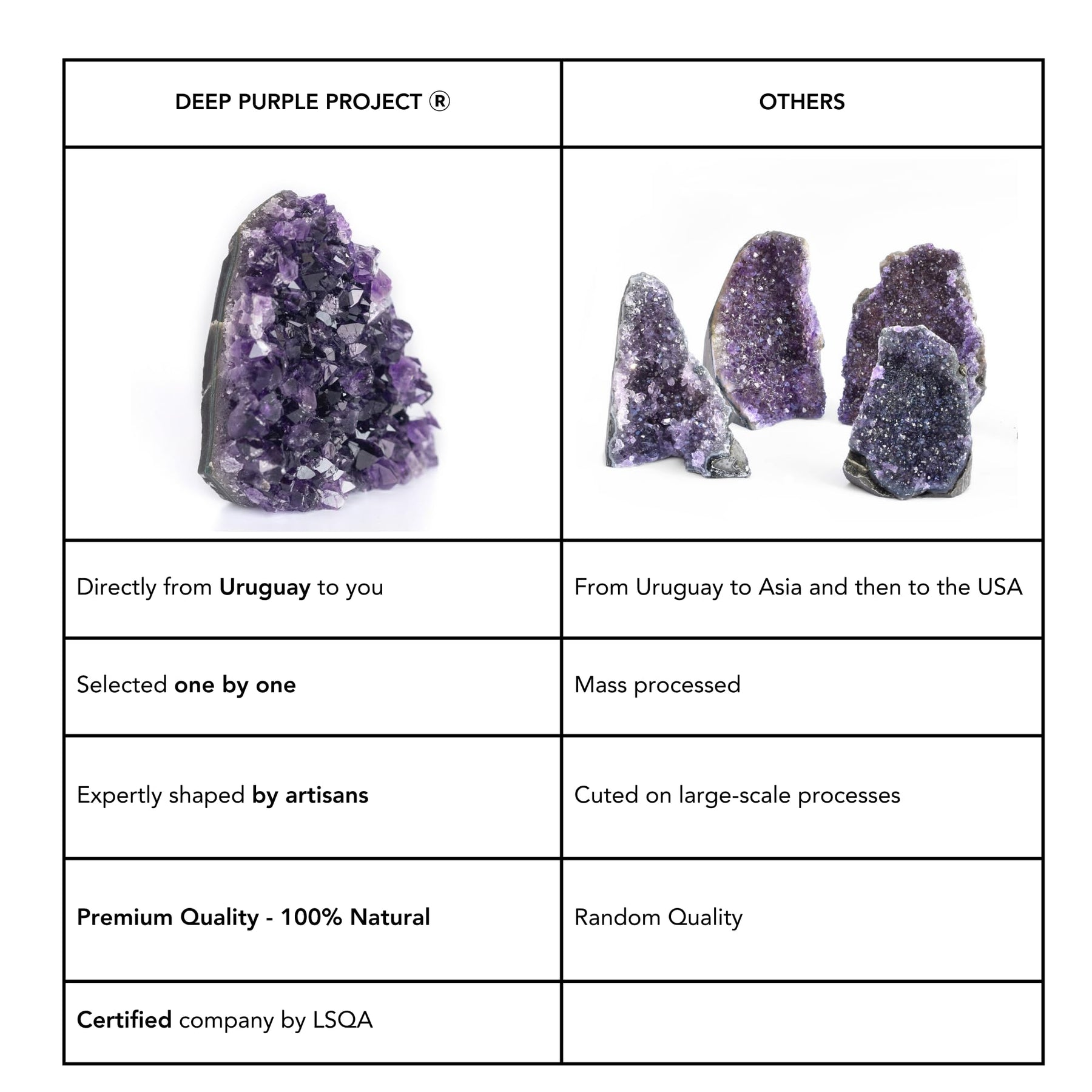 Its vibrant deep purple color is characteristic of the geodes and clusters extracted from Uruguay, one of the few places in the world where you can find these formations. It was extracted from a family-owned mine, respecting the strict standards of open-pit mining in our country that ensure the safety for workers and the environment.