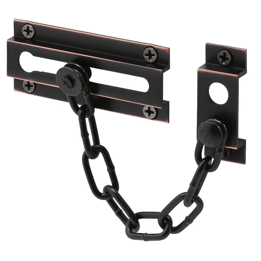 - DURABLE CONSTRUCTION – This chain door guard is constructed of extruded brass with a classic bronze finish and a 6”, 8-link welded steel chain. It’s strong and durable and sure to last.
