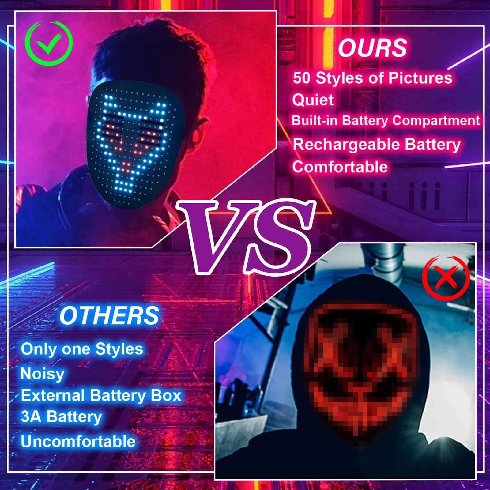 - Led Masks For Adopts Led Full Mask Design With An Adjustable Strap,Which Is Very Suitable For Cosplay,Masquerade,Birthday Party,Halloween,Christmas,Carnival,Electronic Music Festival And Other Occasions.