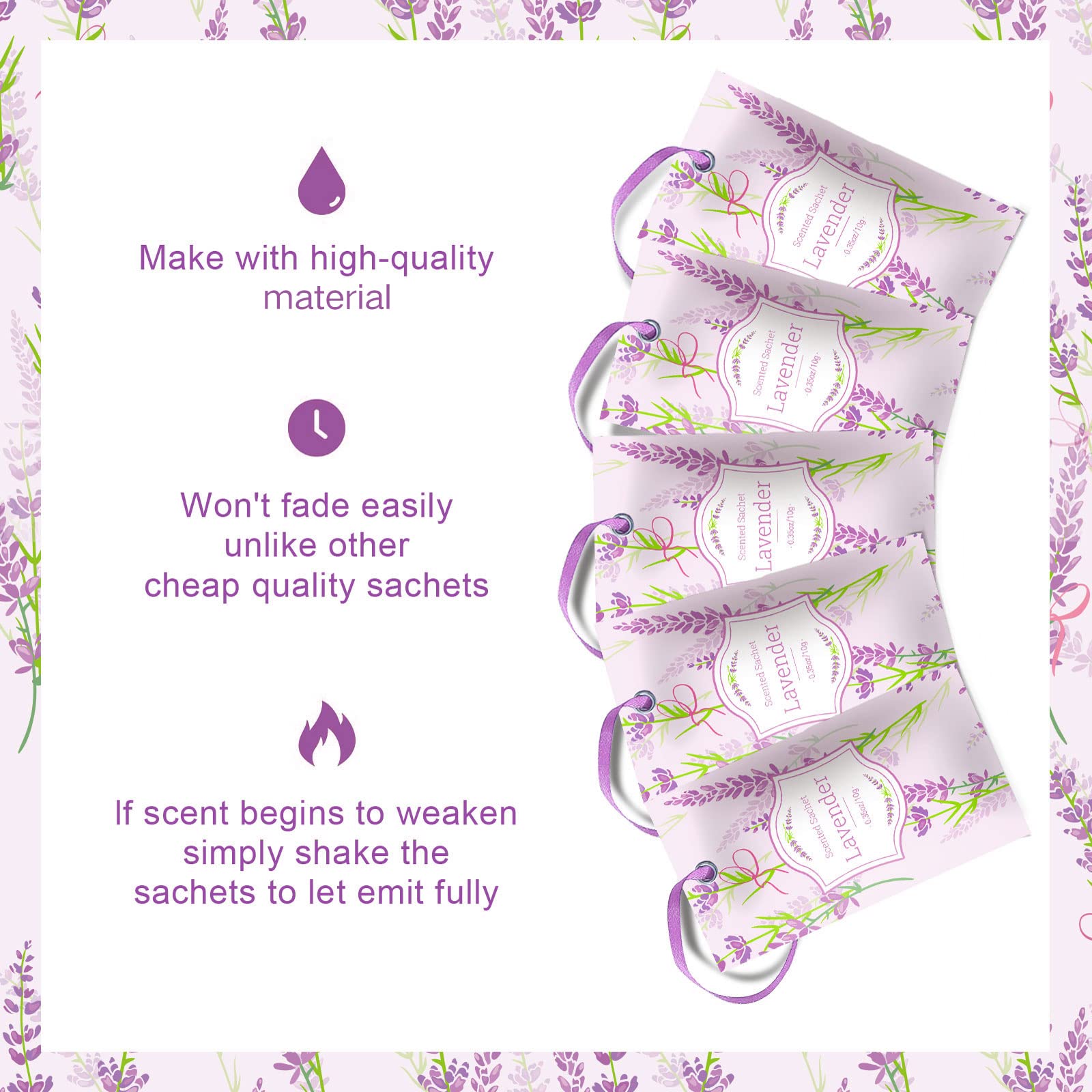 - Packs of 14:Each perfume envelopes sachet is equipped with a well-sealed packaging material, which can effectively prevent the leakage of small particles. Shake the bag or squeeze the sachet before use - release the lavender fragrance