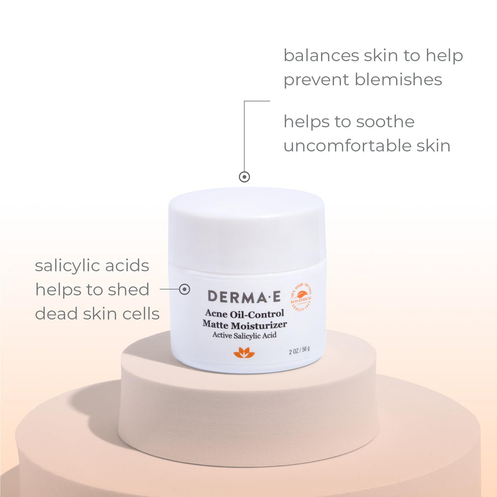 - Original Face Moisturizers – DERMA E Acne Oil Control Face Moisturizer, 2 Oz, Matte Moisturizer with Salicylic Acid, Tea Tree Oil & Aloe Vera, Face Cream Rebalances Sebum Production & Prevents Blemishes, Redness & Breakouts 2 Oz by Derma E