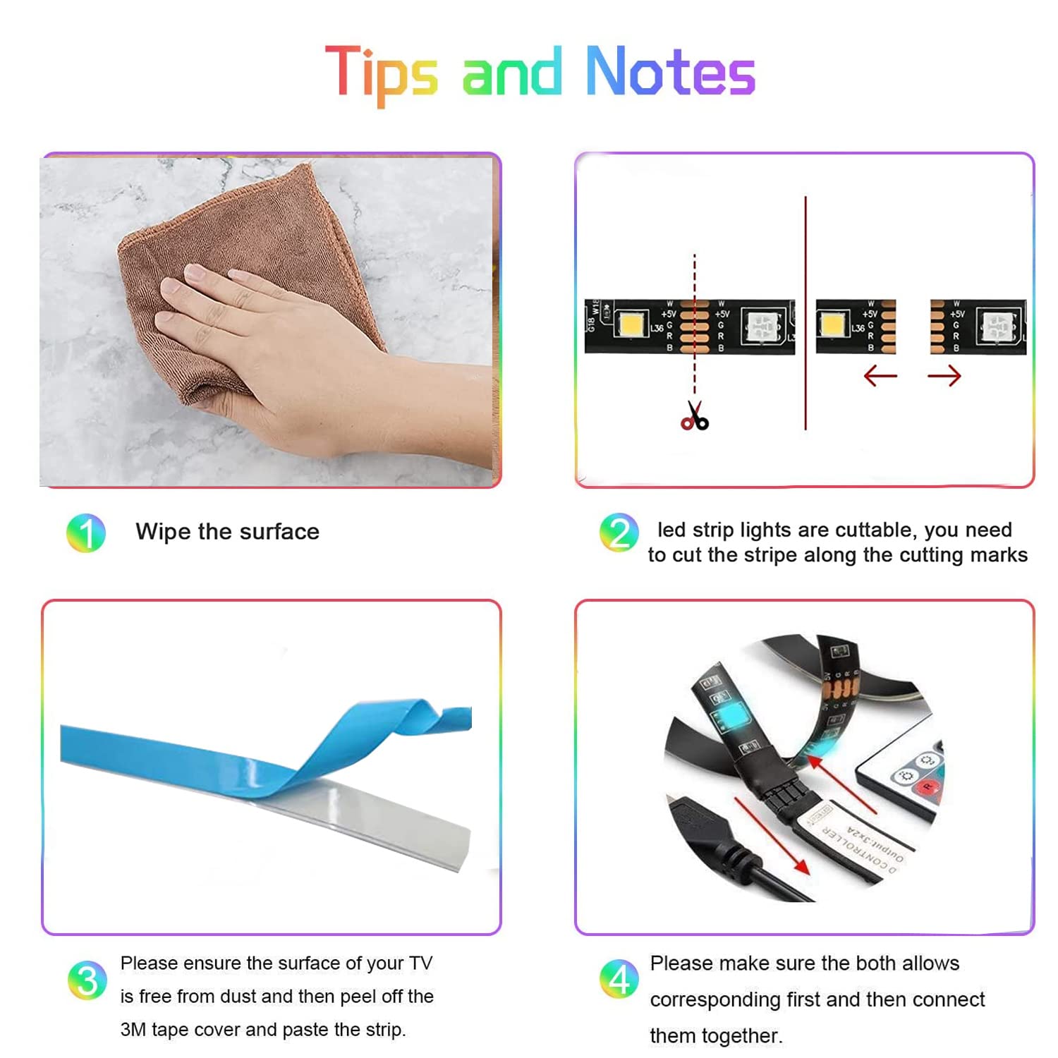 - Easy Installation:Battery powered led strip lights driven by 4x AA battery (Not included), just plug and play,no need extra AC or DC power. The led strip lights can be cut between every 3 leds. 3M super viscous glue backing tape for secure and easy application to almost any surface.