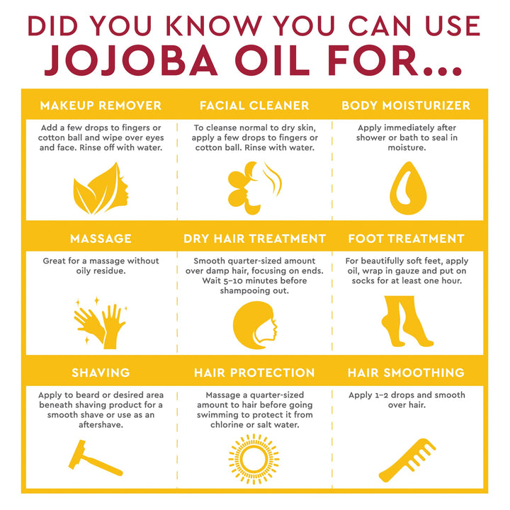 - 100% PURE & ORGANIC - Jojoba moisturizing oil is a natural, time-honored skin and hair care product that acts as a perfect carrier oil for your favorite essential oils.