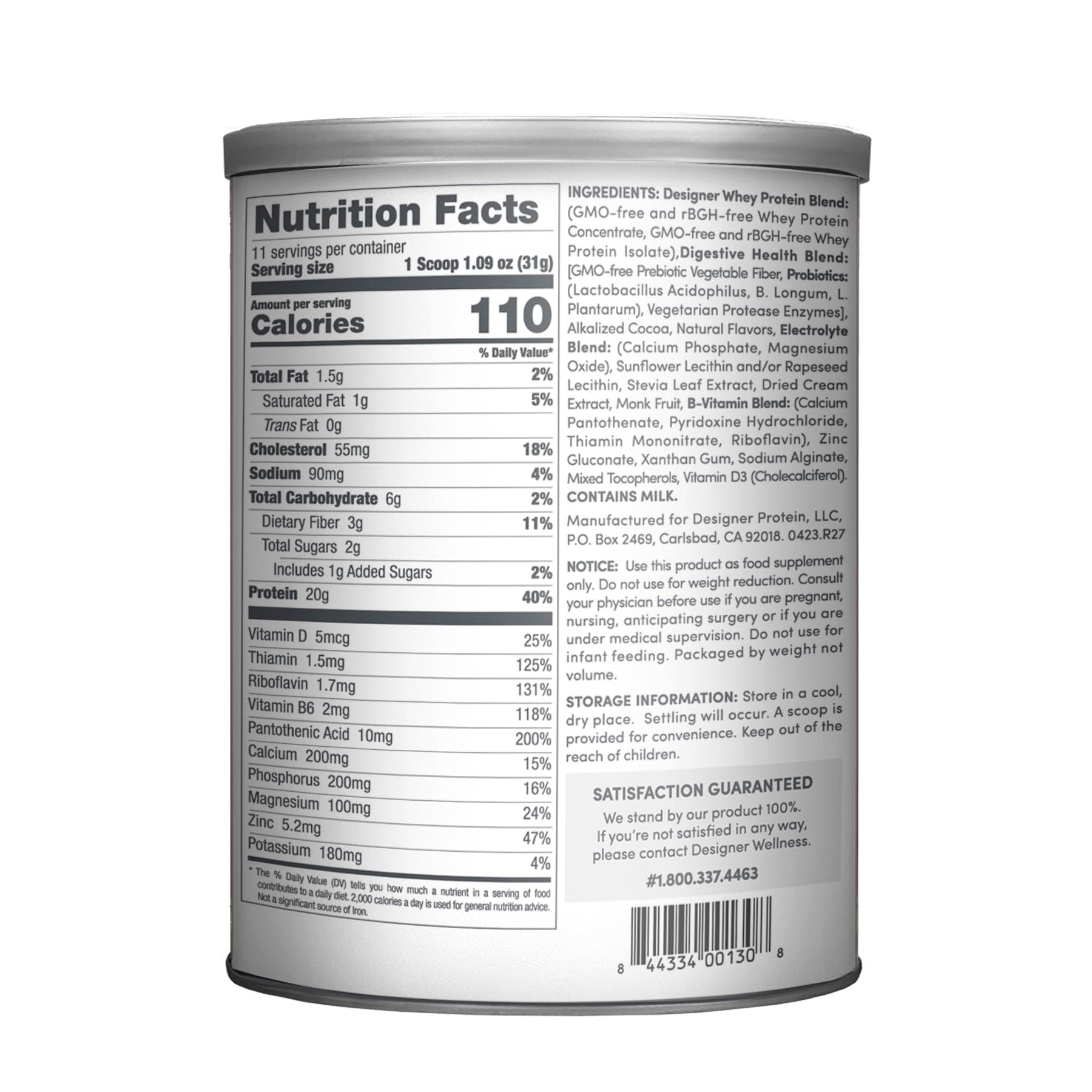 - Original Whey – Designer Wellness Designer Whey Natural 100% Whey Protein Powder with Probiotics , Fiber, and Key B-Vitamins for Energy, Gluten-free, Non-GMO, Gourmet Chocolate 12 oz by Designer Protein