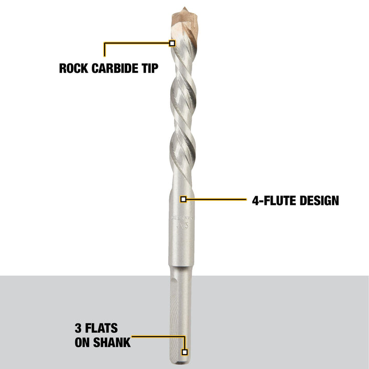 - Three flats on shank eliminate bit slipping in chuck (except DW5232, DW5233, DW5237, DW5238)