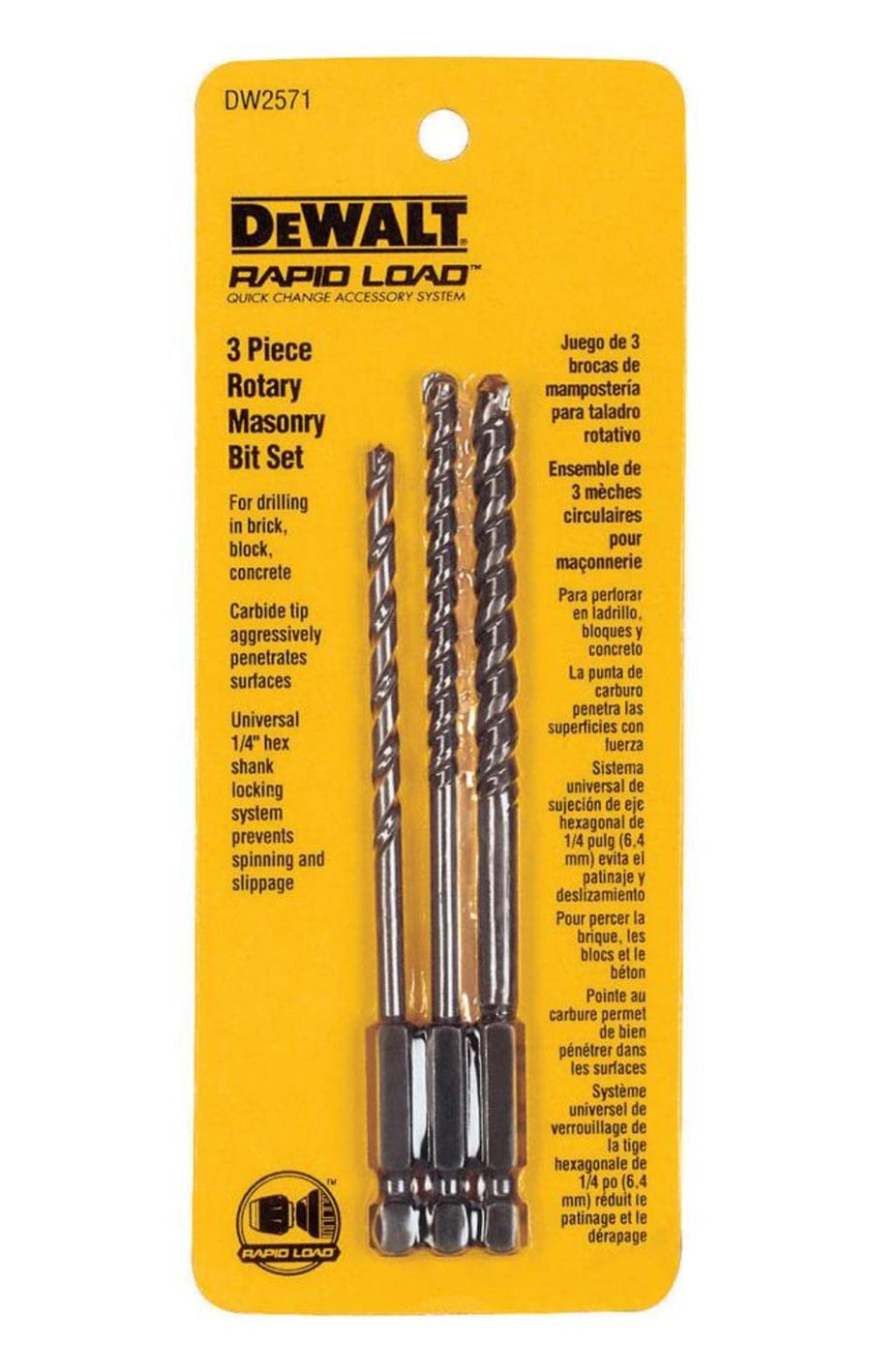 - Original Masonry Drill Bit Sets – Masonry Drill Bit Set, Rotary, 3-Piece (DW2571) by DEWALT