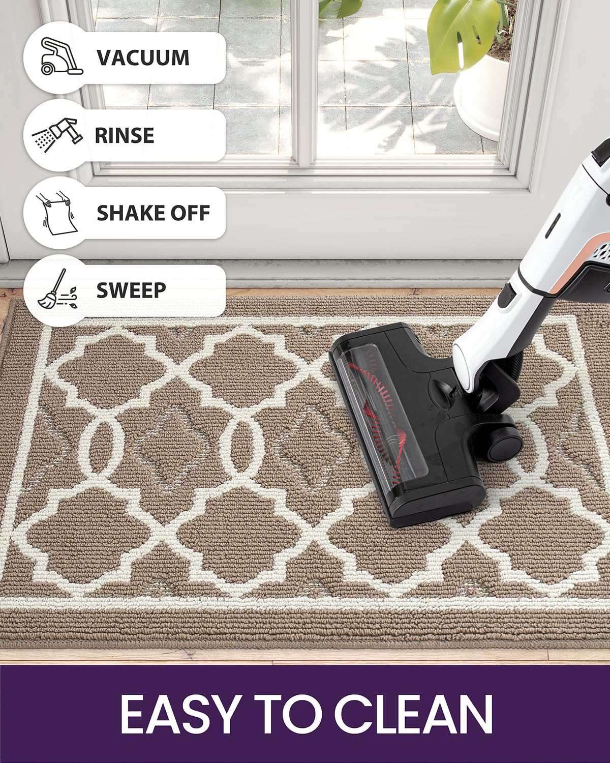 - Easy Care Entrance Rug : Sweep with a broom or vacuum regularly, shake off outdoors or over your garbage. For a deeper clean, machine washed and dried are available. We recommend rinsing it under the cold water. Please clean with mild soap and do no use bleach