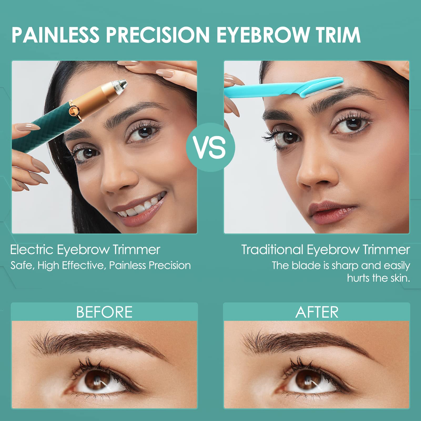- EASY TO USE- The painless hair trimmer is easy to use and can shape the perfect eyebrow shape. It is also a perfect substitute for more traditional eyebrow scrapers, wax and tweezers.