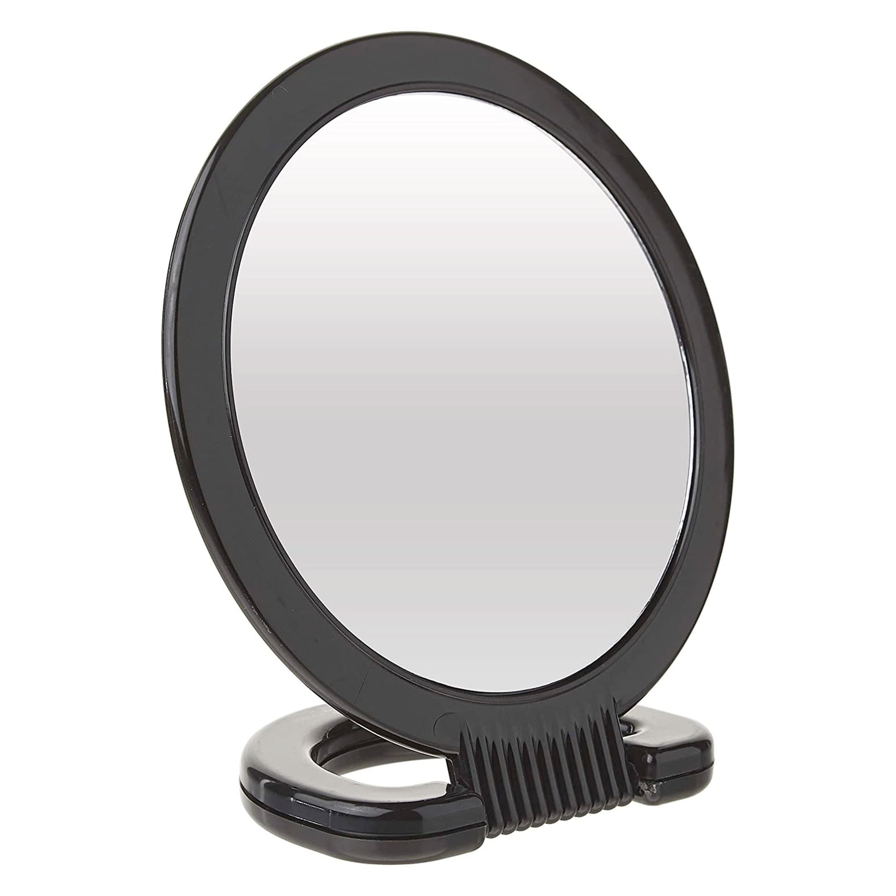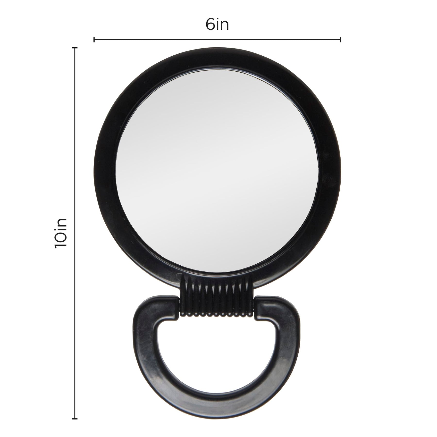 - HANDY MIRROR: The Diane Plastic Handheld Mirror can be held or mounted to a wall, as its handle comes in a circle shape. The handle also doubles as a stand for use on a tabletop or desk