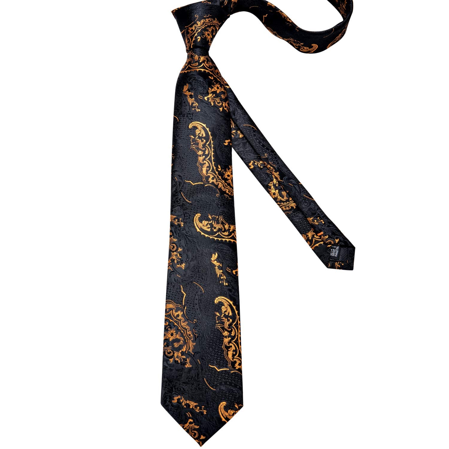 - Original Tie Sets – Mens Tie Set Silk Solid Paisley Necktie and Pocket Square Cufflinks Classic Formal Ties for Men Wedding Party, Black Gold by DiBanGu