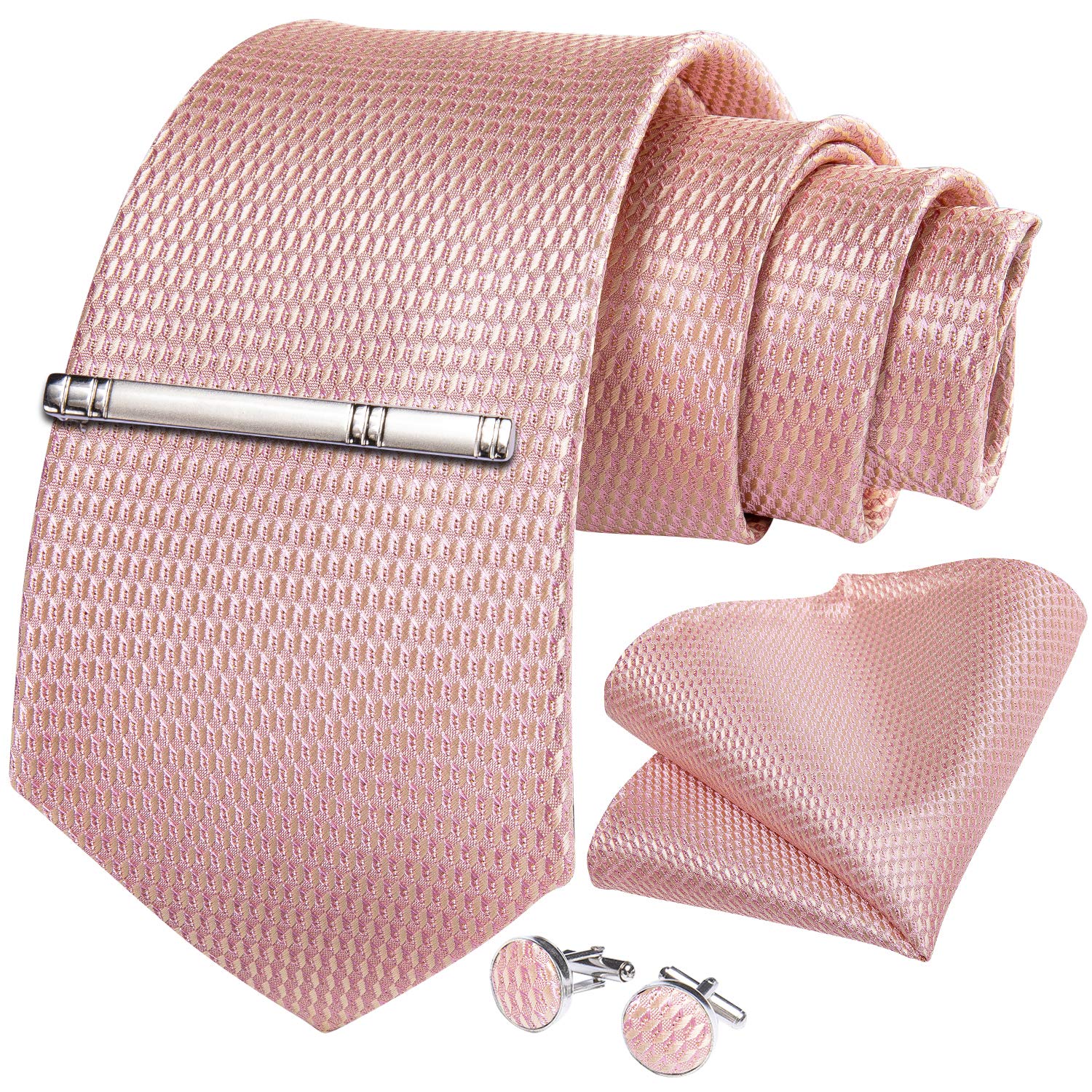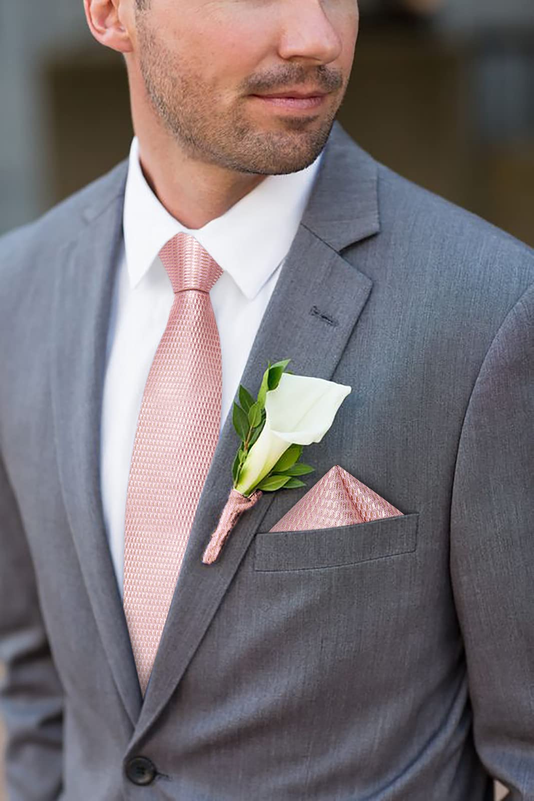 - MATERIAL and CRAFTNecktie and pocket square are made from Silk. 2000 stitches jacquard woven craft, high-density fabric makes the formal blush pink tie set non-deformed and soft with a genuine look and feel