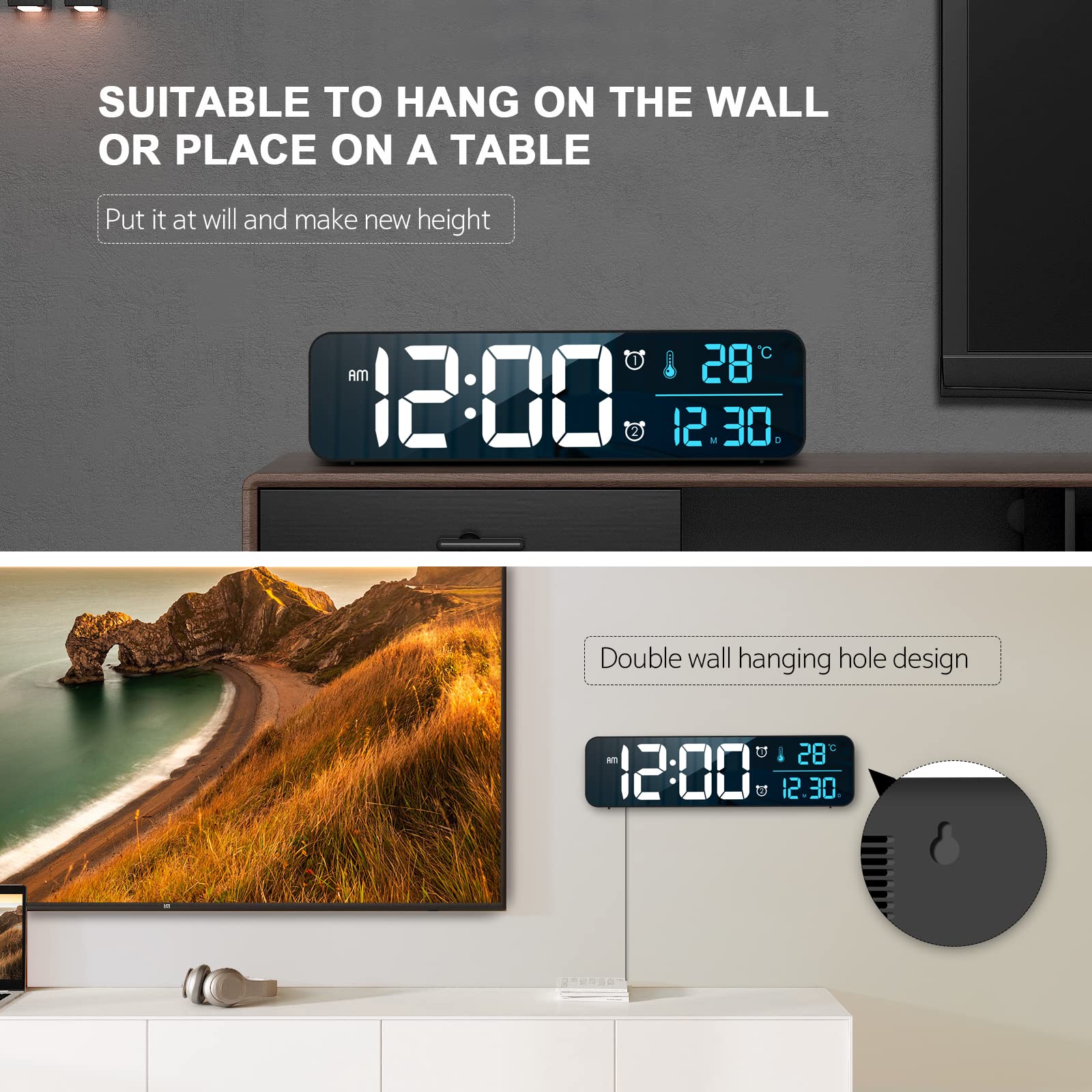 - Original Alarm Clocks – Digital Clock, Clock for Bedroom, Digital Wall Clock, Clocks for Living Room Decor, Desk Clock, Table Clock, Digital Clock Large Display, Smart Alarm Clock for Office Blue (Wired Black+Blue Digit) by Hournor