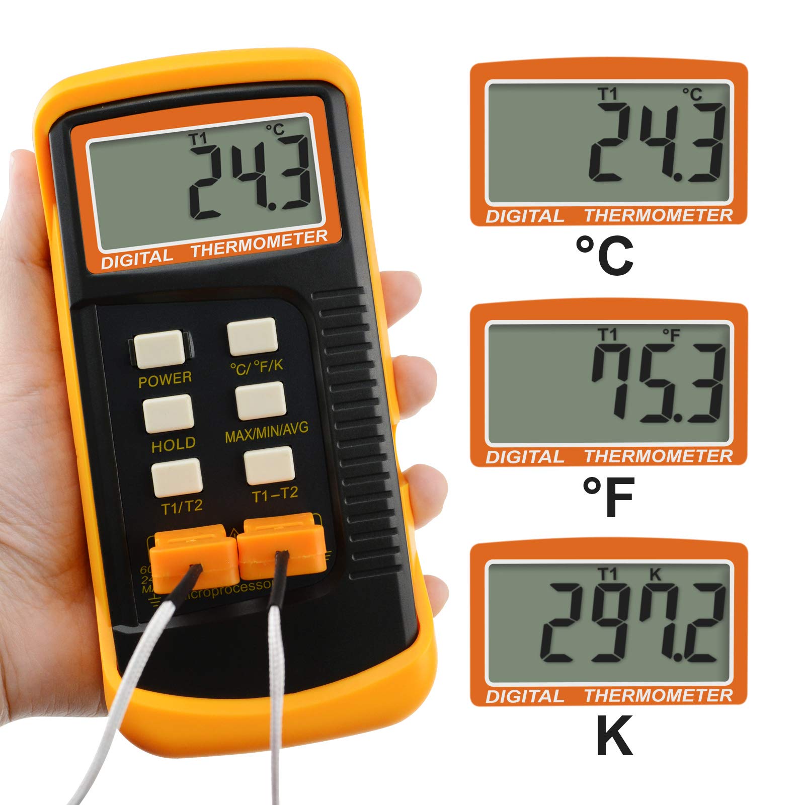 - Original Digital Thermometers – Digital K-Type Thermometer Dual Channel Thermocouple Thermometer with 2 Thermocouples, Measuring Range: -50 to 1300°C (-58 to 2372°F), High-Temperature Meter Measurement Sensor by Gain Express