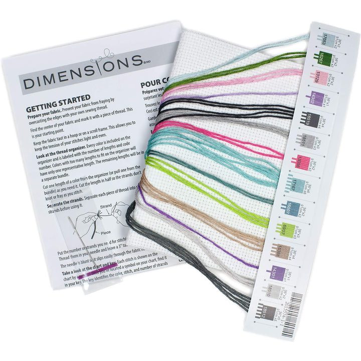 - Perfect as a personalized piece of home décor, this Dimensions counted cross stitch kit features a charming floral pattern overflowing with color
