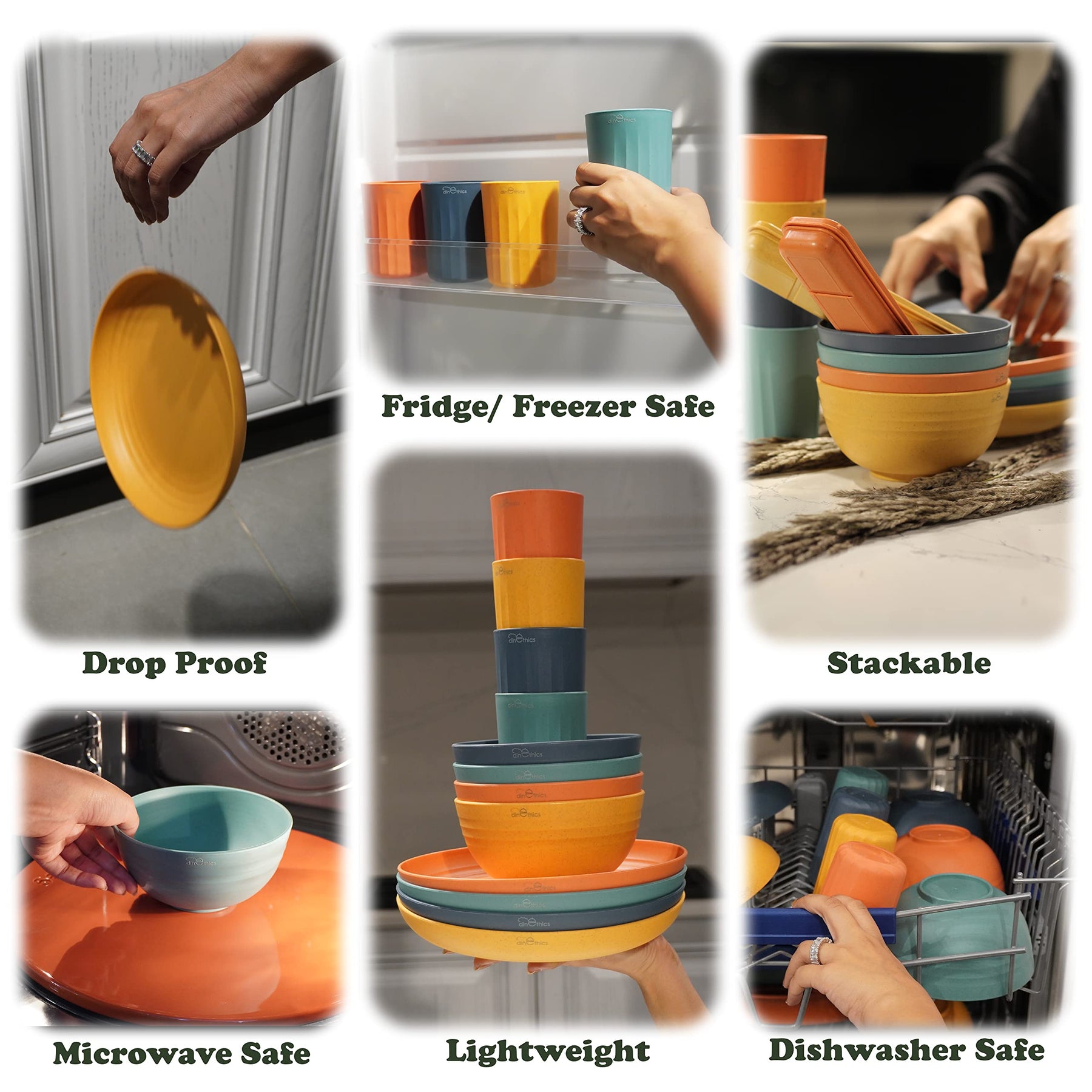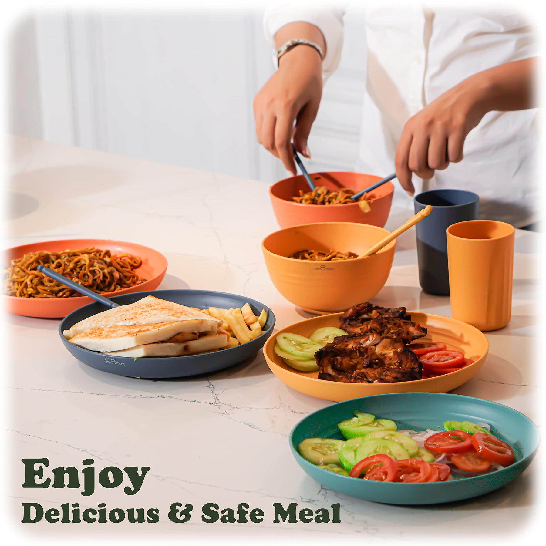 - LIGHTWEIGHT & STURDY WHEAT STRAW DINNERWARE SET : Our unbreakable dishes Have Smooth Finish Look In Vibrant Colors. This Non Breakable Dinnerware Is Like A Piece Of Art Which Enhances Home Décor!
