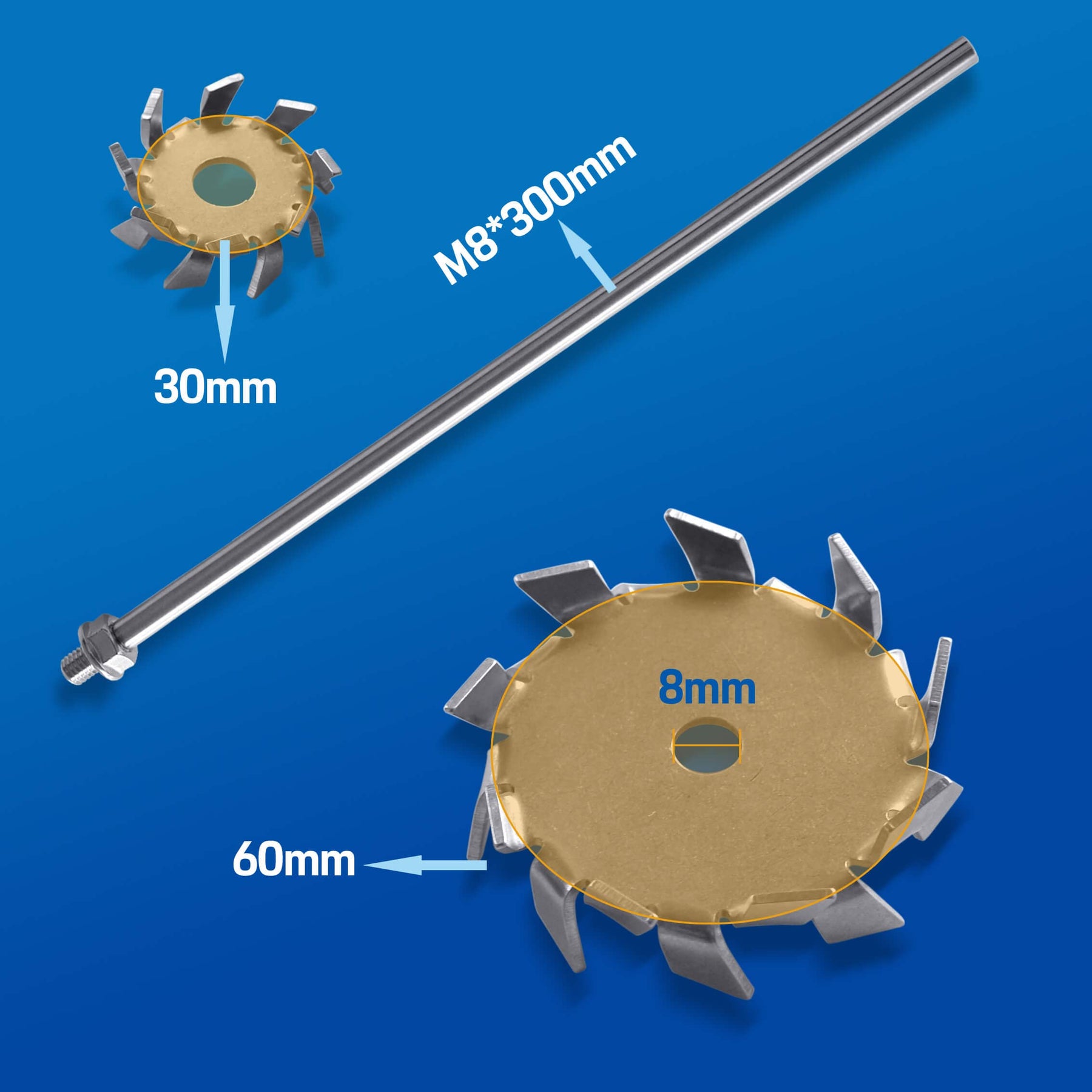 - Original Stirrer Accessories – Dispersing Disc Dispersion Impeller - Stainless Steel Dispersing Machine Blade Paddle, 8x300mm Rod with 3cm and 6cm Disc by Polar Tangro