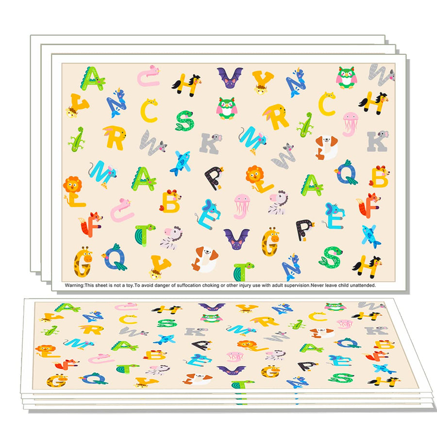 - Rich and interesting designDisposable placemats feature a rich and interesting design that combines letters and animals. The unique letter design can attract children's attention, making meals and creative activities more fun and enjoyable. The fun letter design also allows children to learn the alphabet and animals while using them. The placemats come in a pack of 40, each measuring 12 X18 inch, providing enough space for dining at an affordable price.