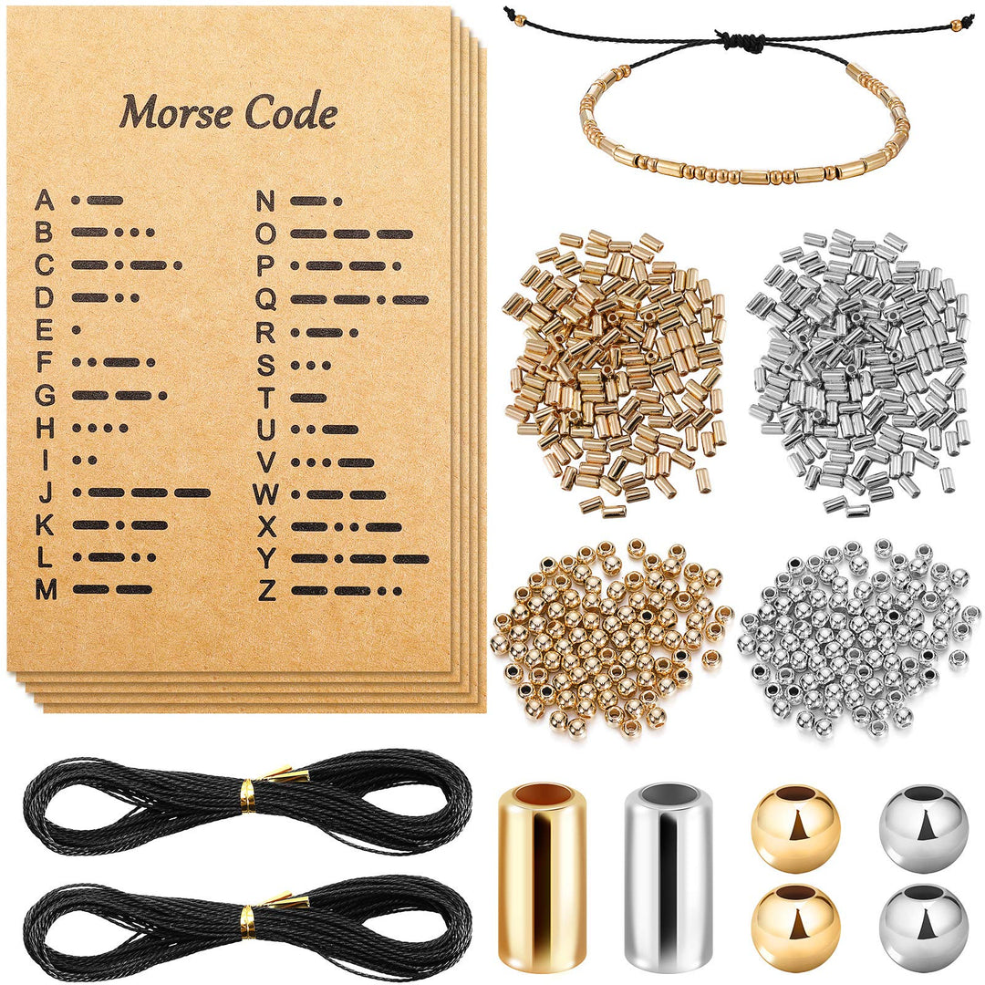 - Original Beads & Bead Assortments – DIY Morse Code Bracelet Making Set, 800 Round Spacer Beads, 800 Long Tube Beads, 20 Morse Code Decoding Card and 2 Rolls 66 ft Waxed Polyester Twine Cord (Silver and Gold, Black Rope) by Yaomiao