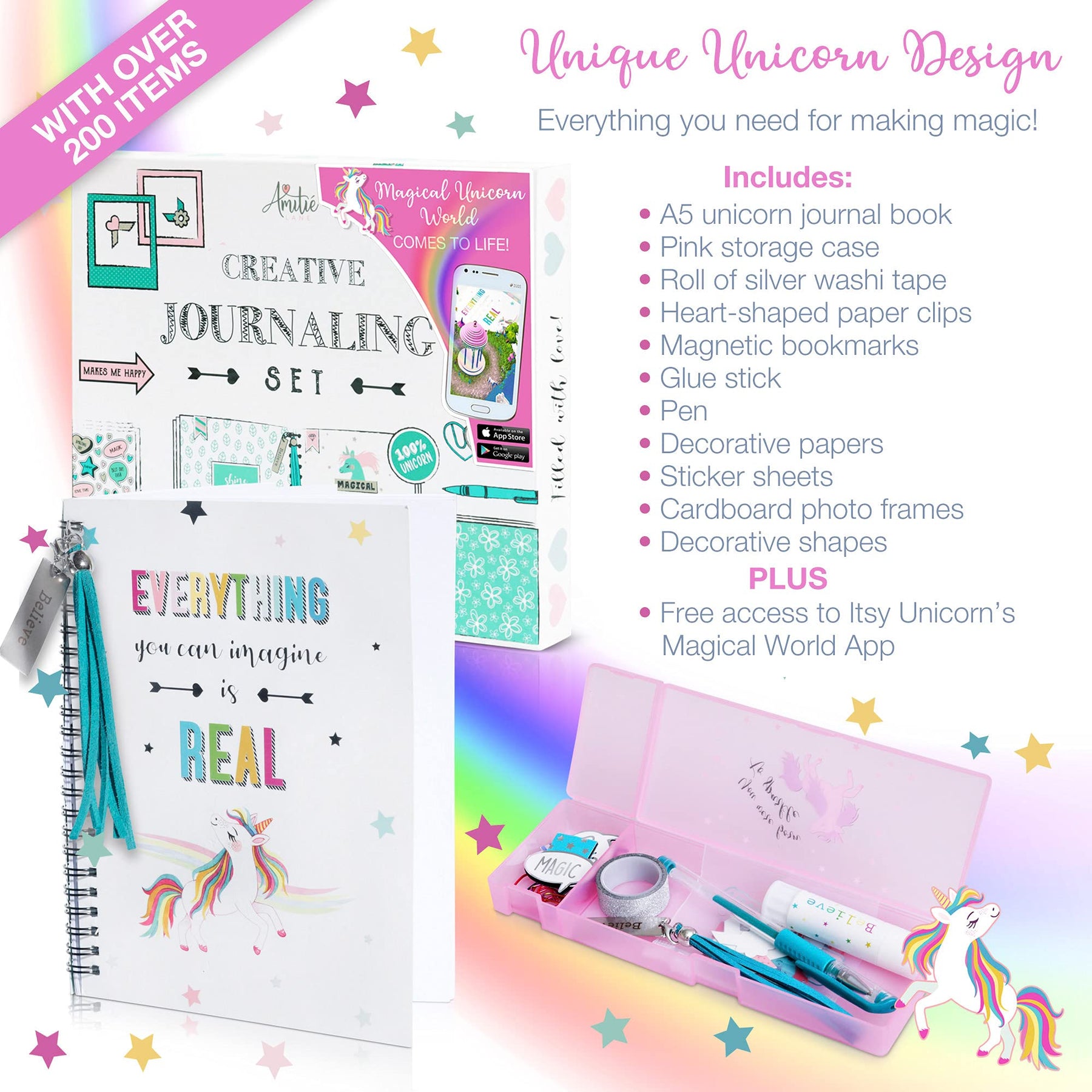 - Augmented Reality Experience: This unicorn journal set is unlike any other! Download the Itsy Unicorn app and scan the journal cover to spawn Itsy Unicorn in her magical world. Six stickers also unlock six mini-games to play, each of which have messages of empowerment. This is a fully interactive 3D experience that is sure to create that wow moment! Collect other Amitié Lane products to discover new parts of Itsy's World. This is a unique way to expose girls to STEM technology and education.