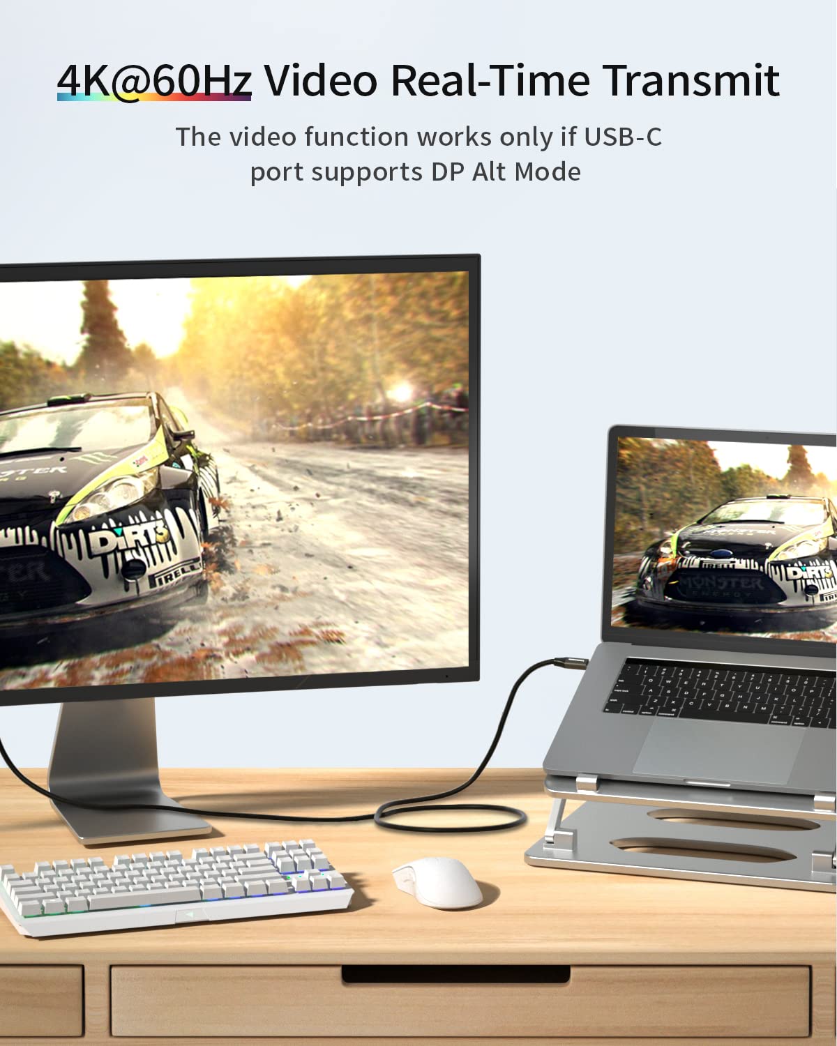 - 4K Video Output: Supports Thunderbolt 3 port. Offers 4K@60Hz (3840*2160) video output function from USB C laptops to USB C display screen or monitor, such as LG 4k, Samsung, HP EliteDisplay, Dell USB-C Monitors and more. (Note: The video function works for those devices that the USB C port supports DP Alt Mode.)