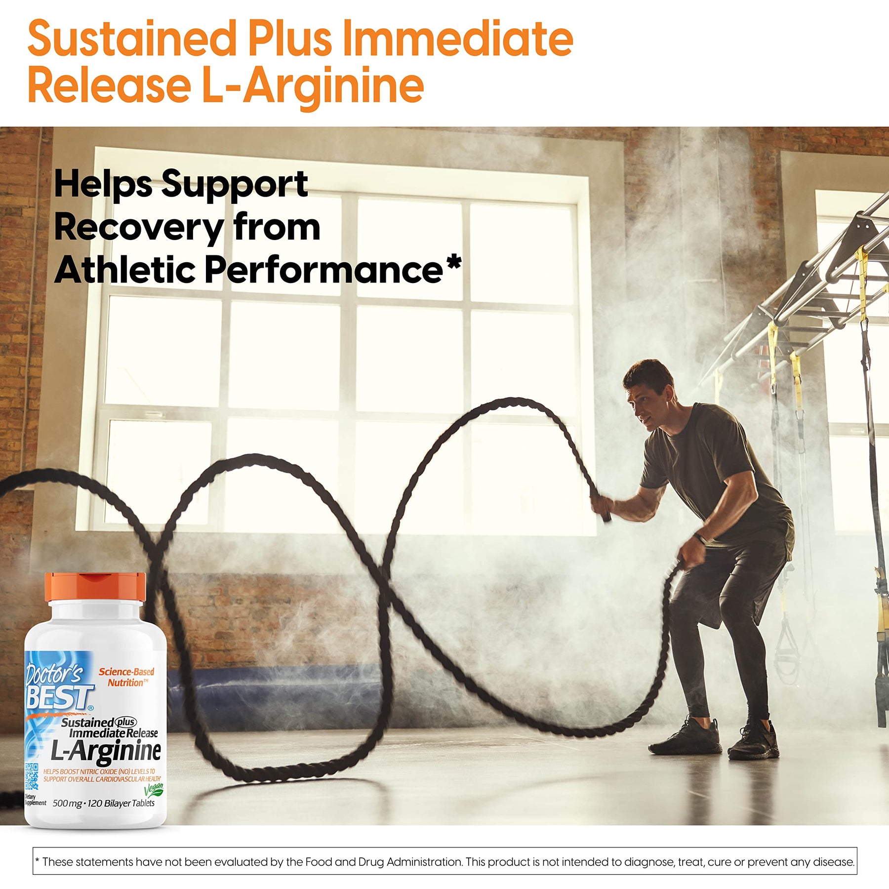 - Original L-Arginine – Doctor's Best Sustained Plus Immediate Release L-Arginine, Non-GMO, Vegan, Gluten & Soy Free, 500 mg, Tablet, 120 Count by Doctor's BEST