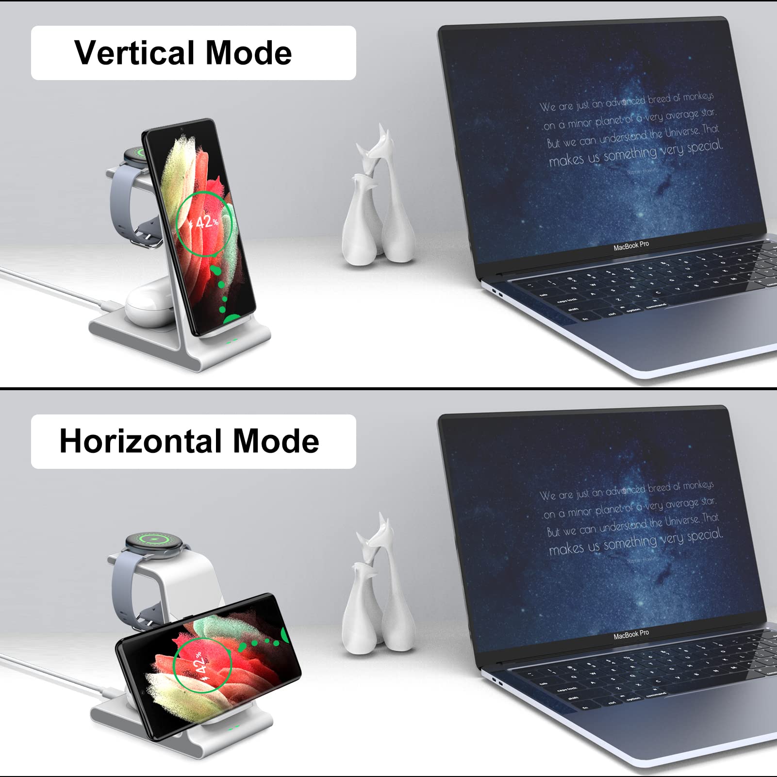 - Original Charging Stations – Wireless Charger for Samsung Galaxy S23 Ultra S22 Z Flip 3/Fold 3 S21 FE, 3 in 1 Wireless Charging Station for S21/20/10/9, Galaxy Watch 7/6/5/4/3/1/Active 2/1/Buds/Pro, Gear S4/3 Sport (White) by doeboe