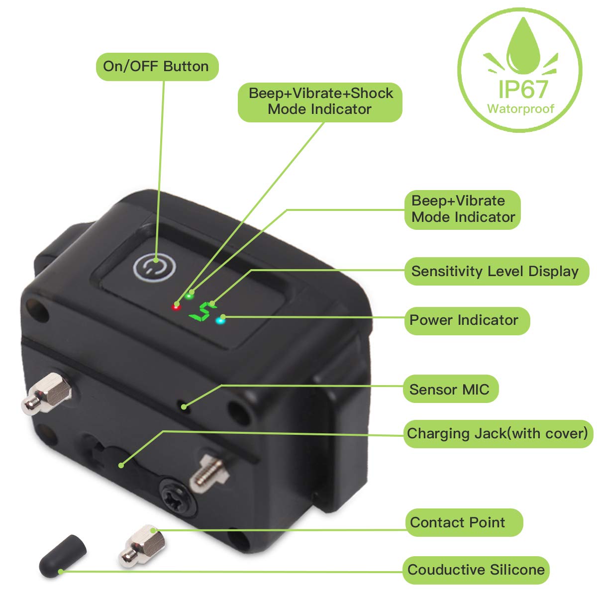 - Dog shock collar with 5 sensitivity setting can detect all size dog barking,choose the appropriate sensitivity which detect the bark most effective for your dog