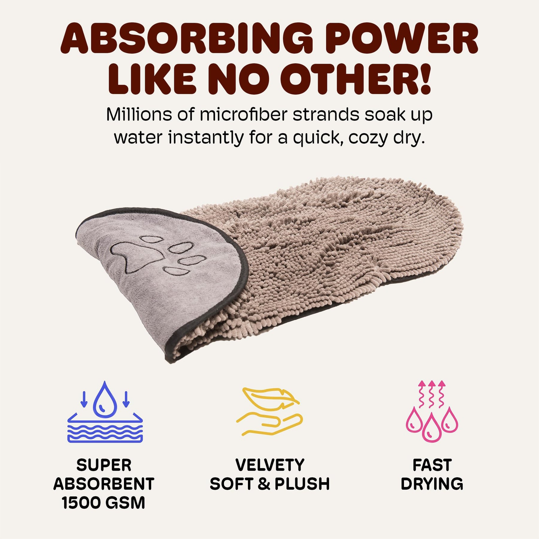 - Original Hair Removal Mitts & Rollers – The Dirty Dog Shammy - Fast Drying Plush Shammy Towel with Dual Hand Pockets and Elastic - Super Absorbent Microfiber and Machine Washable - Grey by Dog Gone Smart