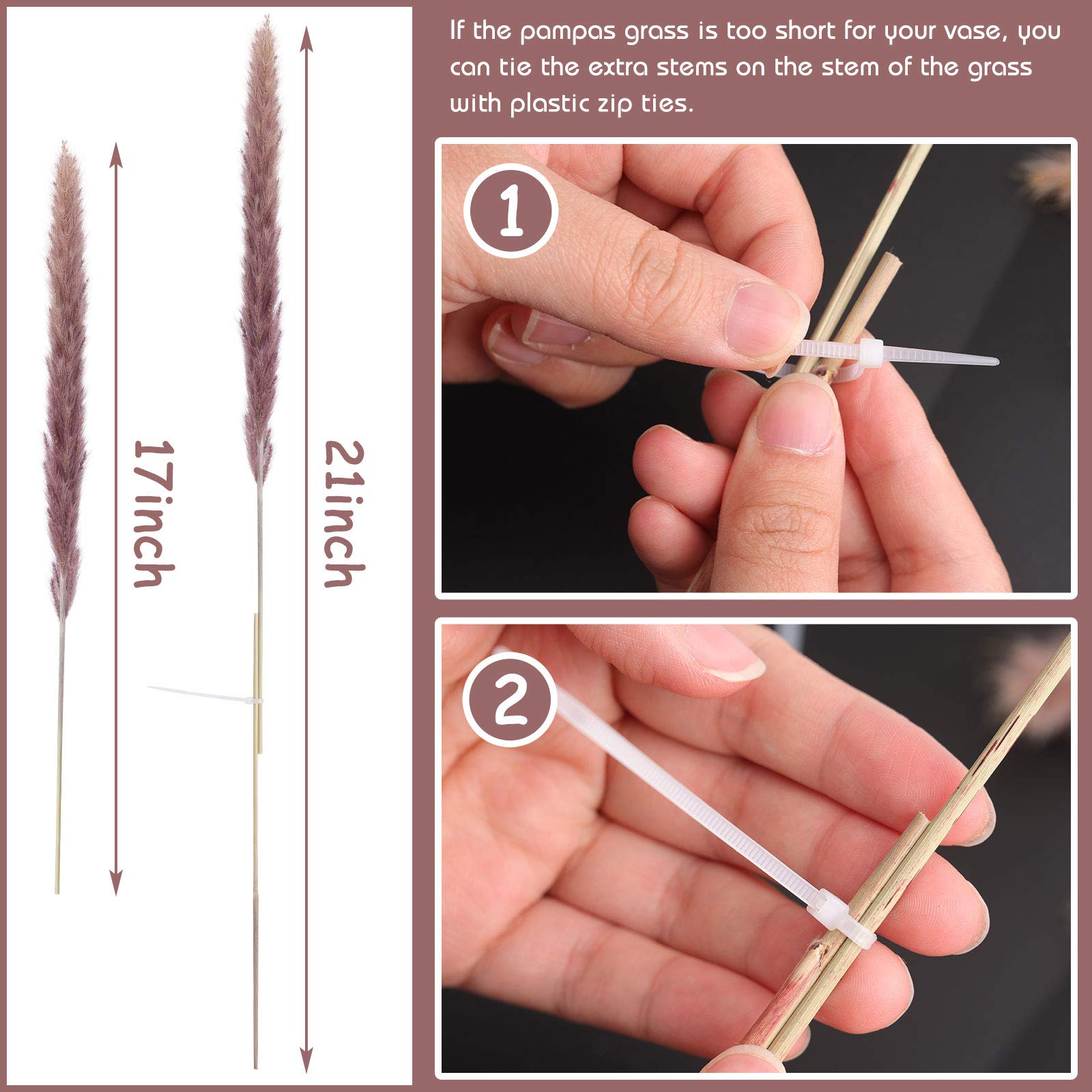 - Extra Accessories - Zip ties and extension stems came along. If the pampas grass is too short for your vase, you can tie the extra stems on the stem of the grass with plastic zip ties.