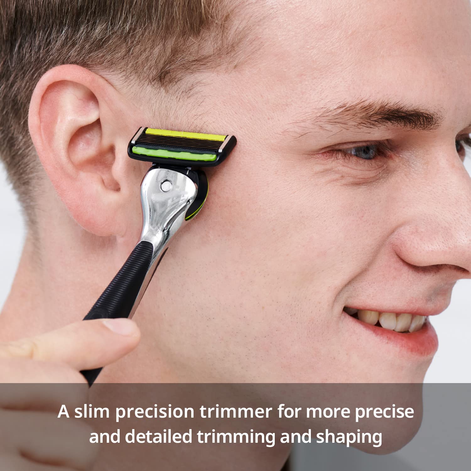 Head Action and Nick PreventionThe 3D Motion of the handle pivots the blades to the contours of your skin, helping you get a smooth, comfortable shave.Soft rubber guard glides softly over your skin for skin preparation and protection.