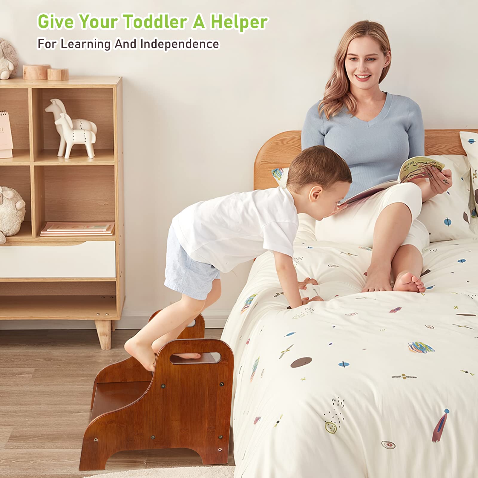 - Original Step Stools – Wooden Step Stool for Adults Kids, Super Sturdy Non-Slip Stepping Stool, Holds 270lbs, Portable Toddler 2 Step Stool, Bamboo Wood Kids Stool for Bathroom, Potty Training, Kitchen (Brown) by DORPU