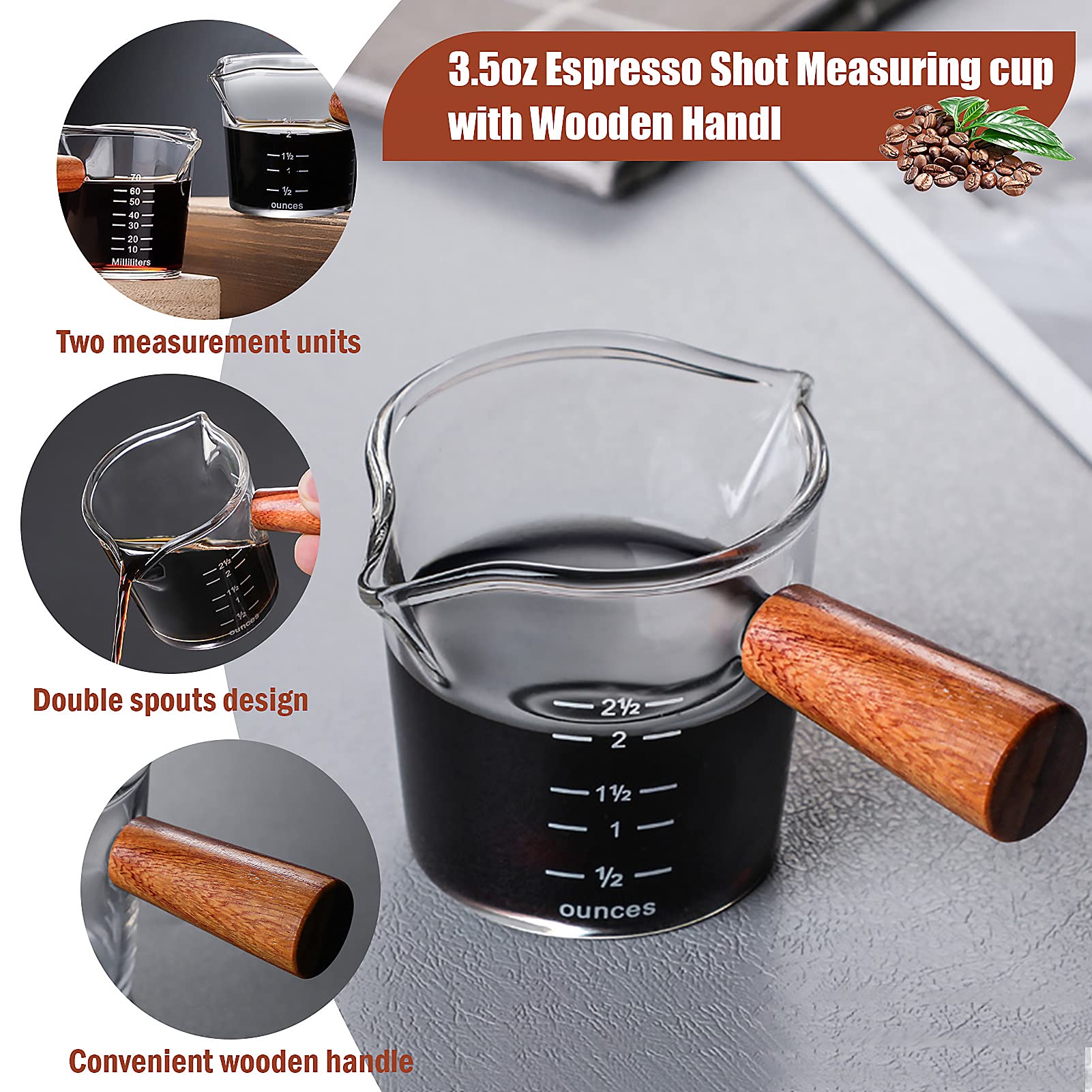 - Original Cups – Double Spouts Measuring Cup with Wooden Handle Heat-Resistant Espresso Shot Glasses 3.5oz Mini Sauce Pitcher for Milk Coffee Tea Wine Cocktail by BOMEX