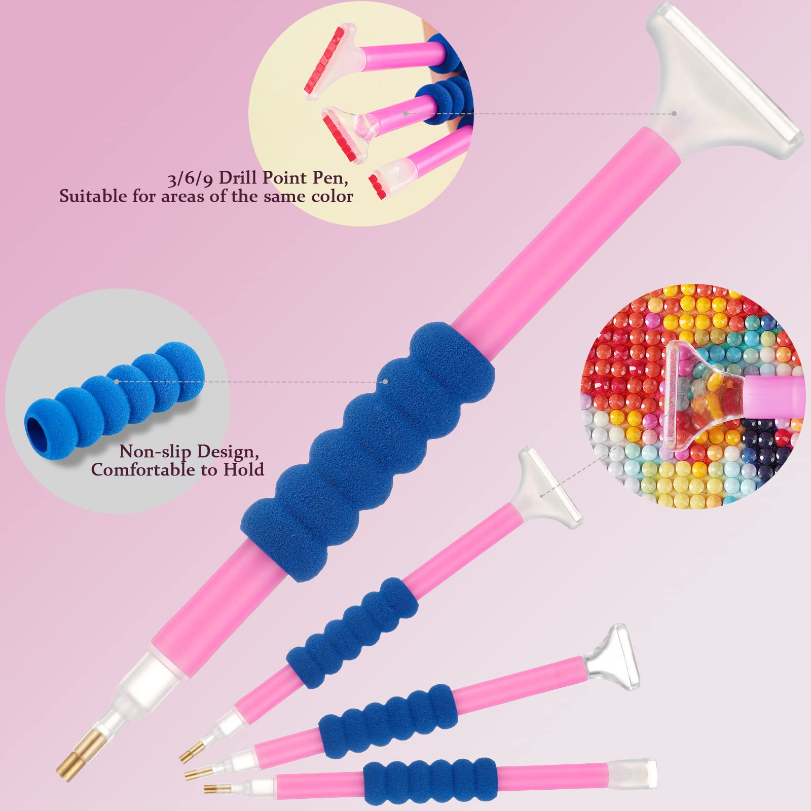 - Practical Diamond Art Accessories & Tools: We specially selected a large number of high-quality diamond painting accessories for your diamond art craftwork. The foldable funnel can avoid spilling diamonds which lets you fill diamonds safer and easier. These diamond painting pens with 3/6/9 drill, especially suitable for a large area with the same color diamond. Tray and wax are also included to meet all your needs at once.