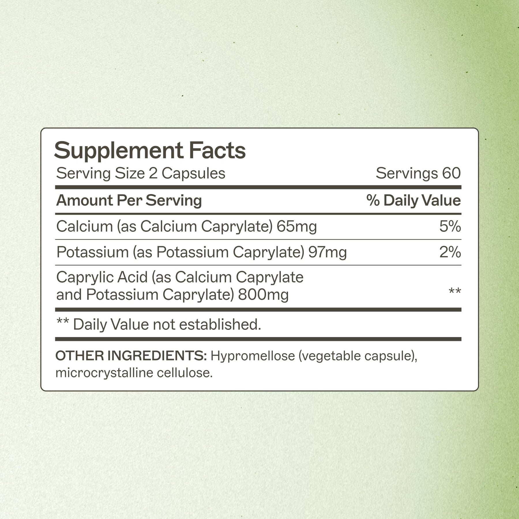 Caprylic Acid - A short-chain fatty acid that promotes the ideal environment for beneficial probiotic