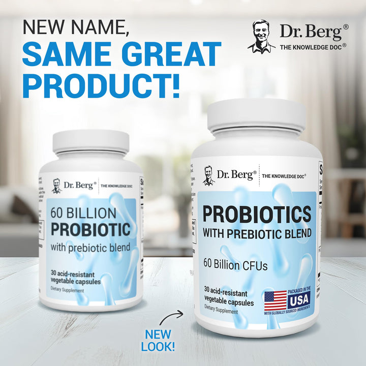 - Original Probiotics – Dr. Berg Probiotic Supplement (60 Billion CFUs) - Helps Ease Occasional Constipation, Diarrhea, Gas & Bloating* - Pre and Probiotics for Digestive Health - 30 Probiotic Capsules by Dr. Berg Nutritionals
