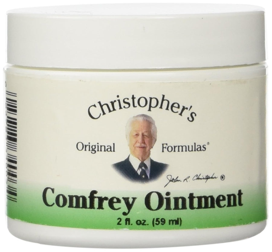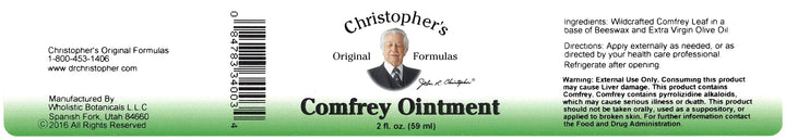 - Original Ointments – Dr. Christopher's Comfrey Ointment, 2 Ounce, contains Organic Comfrey Leaf in a base of Beeswax and Extra Virgin Olive Oil Other Ingredients: No added Fillers or Chemicals by Dr. Christopher's Formula