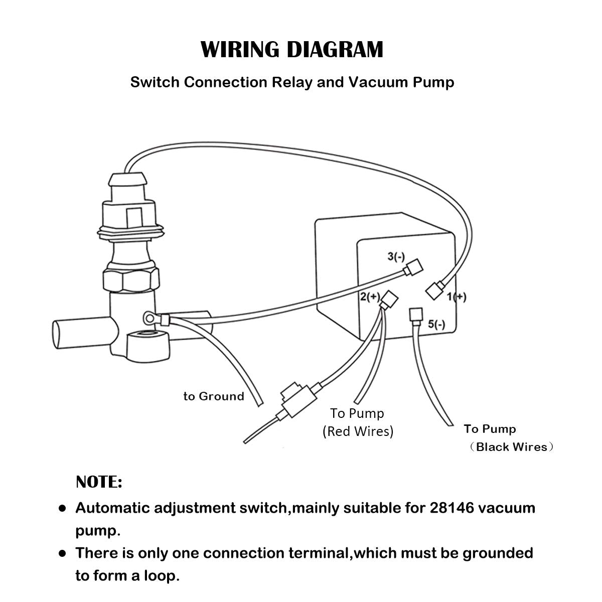 - VACUUM PUMP SWITCH FUNCTION - It keeps the pump from constantly running and preserves pump life;Switch controls vacuum pump on/off bu typically uses a pilot relay between the switch contact and the vacuum pump motor