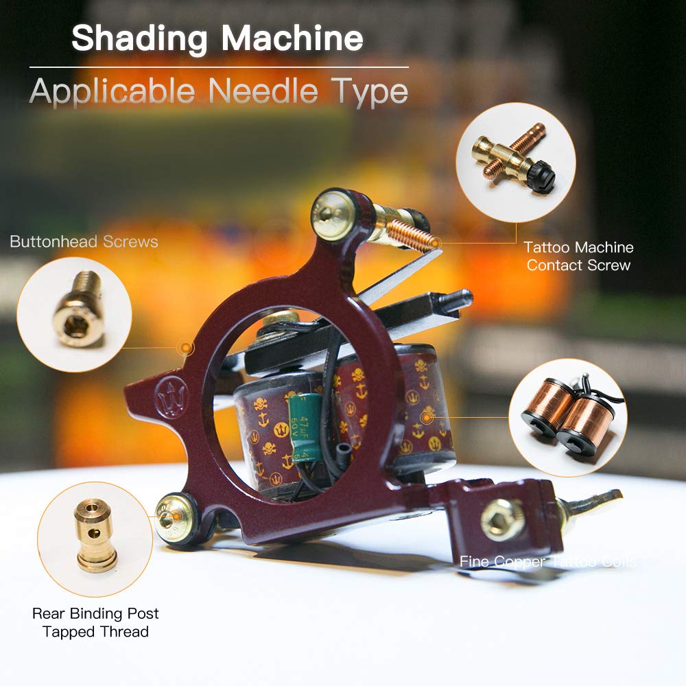 - Dragonhawk Traditional Pro Complete Tattoo Kit: Features two cast iron tattoo machines with full set to make tattooing quick and easy. The lining & shading machines help make it easy to get right tattoo style. You can play and adjust any parts with Dragonhawk pro coils machines. The tattoo machines has a powerful, long-lasting coils. The needles are also stainless steel to provide outstanding cutting performance.