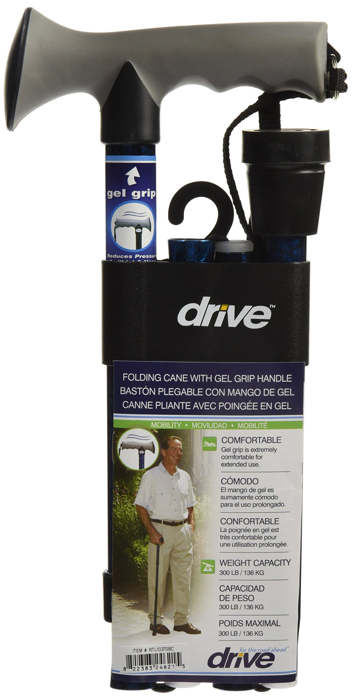 - Original Canes – Adjustable Height Aluminum Folding Cane with Comfortable Gel Hand Grip, Blue Crackle by Drive Medical