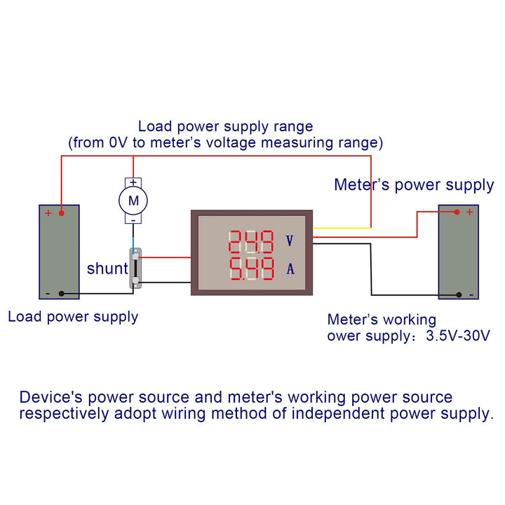 - Original Multimeters & Analyzers – ® 4 Digits High Accuracy Volt Amp Meter DC 0-100V 100A VA Multimeter Voltage Positive and Negative Current Tester Gauge Voltmeter Ammeter Digital 2in1 Blue Red LED Display with 100A/75mV Shunt by DROK