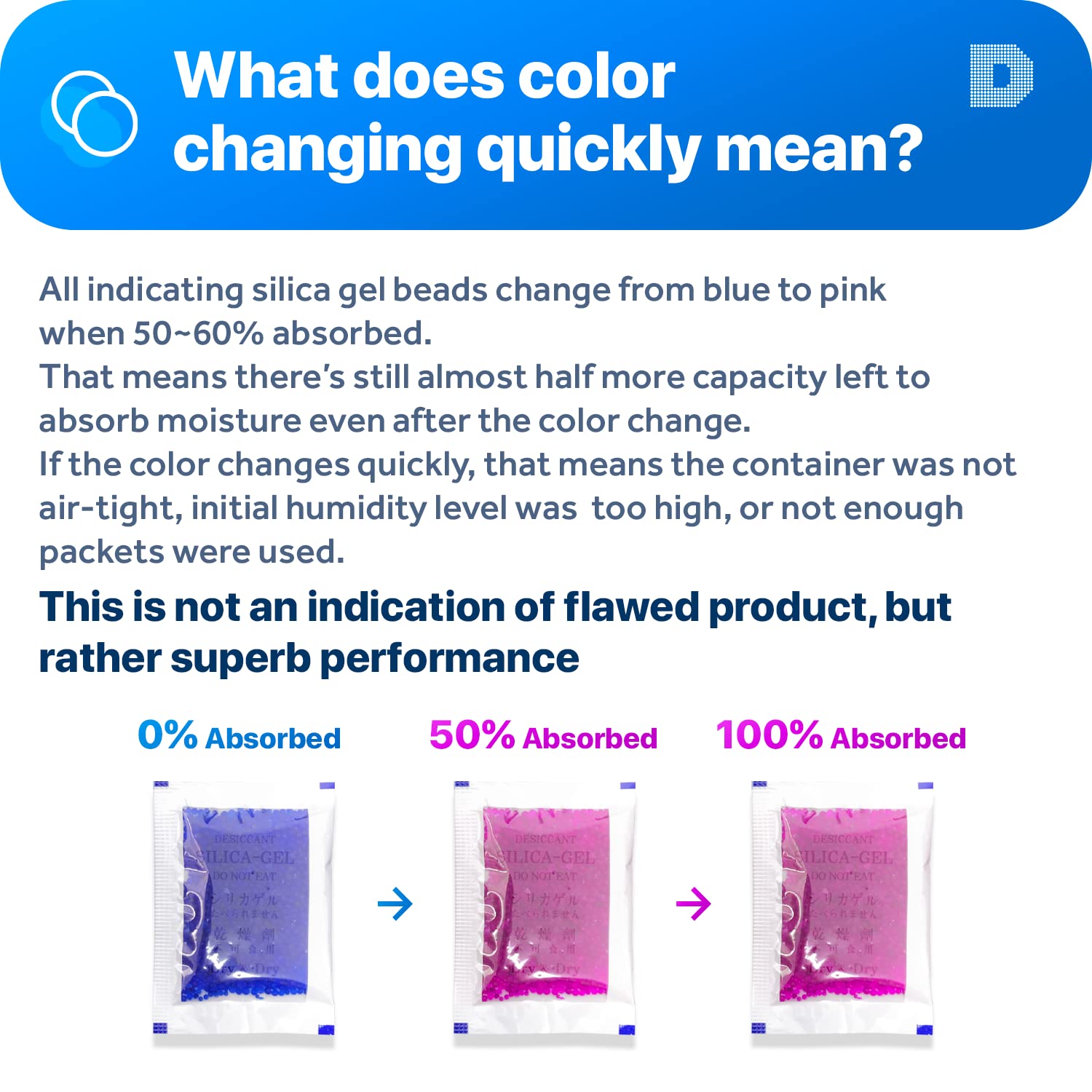 - Original Desiccants – Dry & Dry 5 Gram [50 Packets] Blue Indicating(Blue to Pink) Silica Gel Packets Desiccants Silica Gel Packets - Rechargeable Silica Packets, Silica Gel, Silica Gel Packs by Dry & Dry