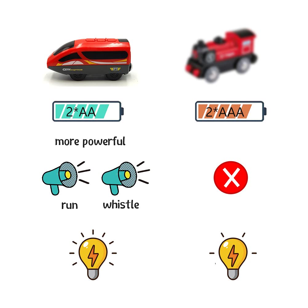 CompatibleThe power train fit wooden train set system & magnetic connection .Compatible with other major brand train sets.
