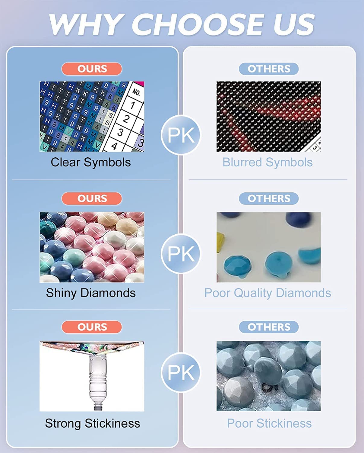 - Super Glue & Long-term preservationThe super glue make drills will stay put a long time. You just press the drill on the canvas. So simple and easy. These 5D diamond painting kits can be preserved for many years avoid soaking and insolating.