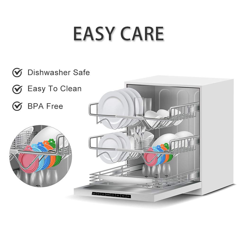 - DURABLE and Eco-friendly --- Silicone can cover lids will not crack, melt, or warp. More durable and more eco-friendly than plastic can lids and cling film! Dishwasher safe. Easy to clean.