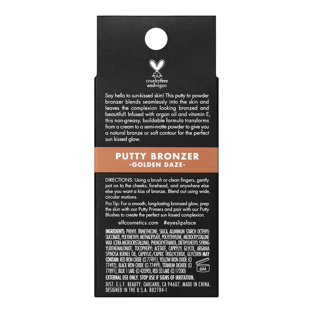 - Original Bronzers – Putty Bronzer, Creamy & Highly Pigmented Formula, Creates a Long-Lasting Bronzed Glow, Infused with Argan Oil & Vitamin E, Golden Daze, 0.35 Oz (10g) by e.l.f.