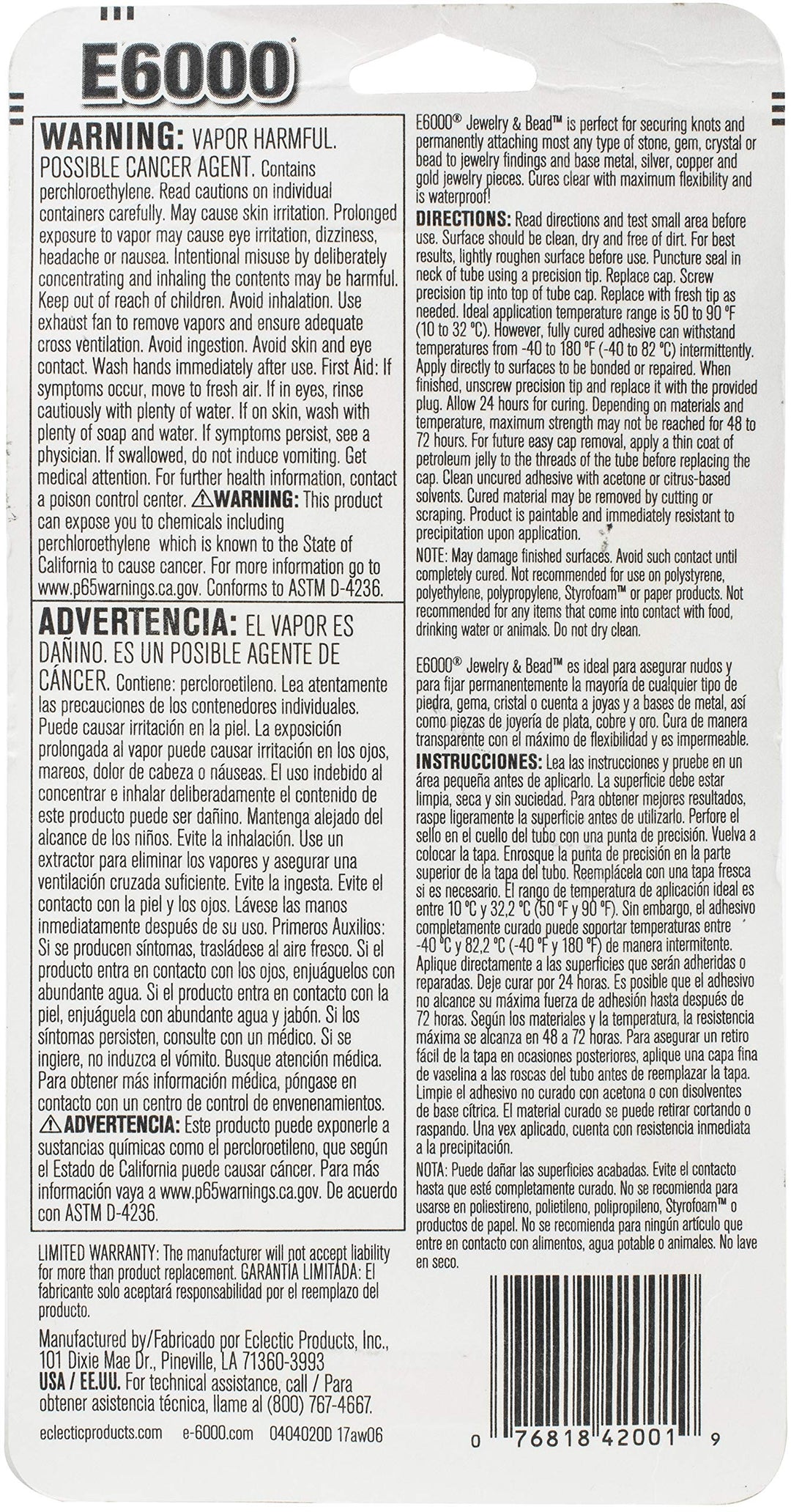 - Original Art Glues & Pastes – 242001 Jewelry and Bead Adhesive - 1 fl oz by E6000