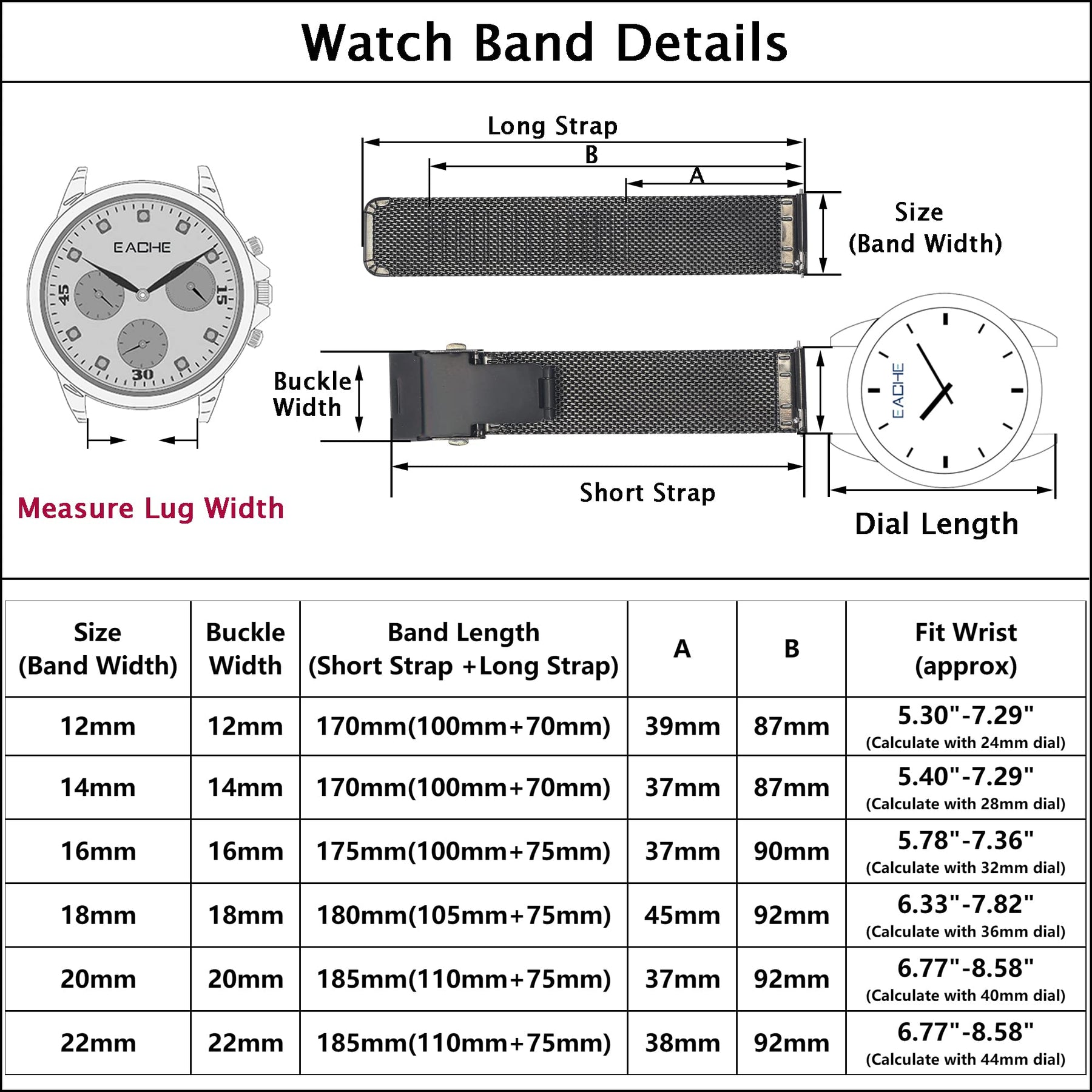 - Find Your Fit20mm stainless steel metal mesh watch bands feel great on your wrist and fits any wrist 6.77''-8.58'' in circumference.