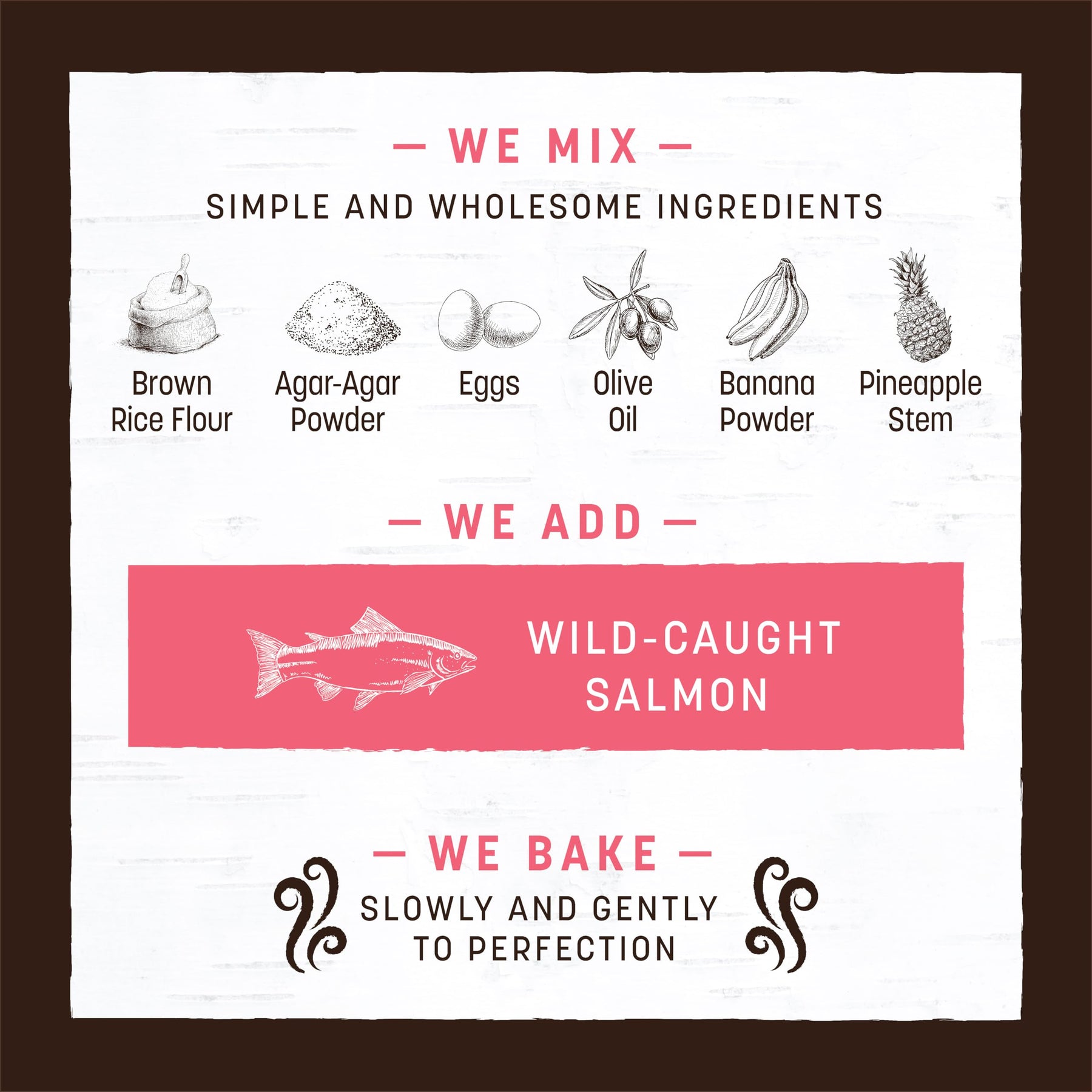| ingredients | Salmon,Brown Rice Flour, Agar-Agar Powder, Eggs, Olive Oil, Banana Powder, Pineapple Stem |